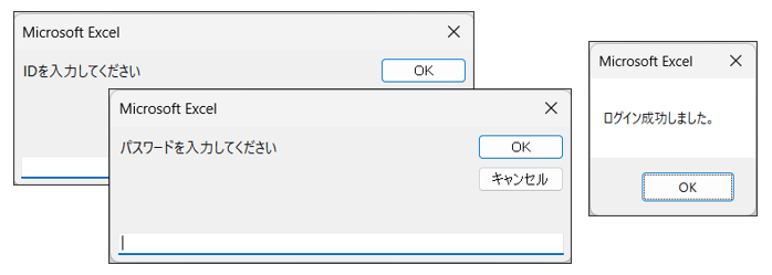 MsgBox "ログイン成功しました。"